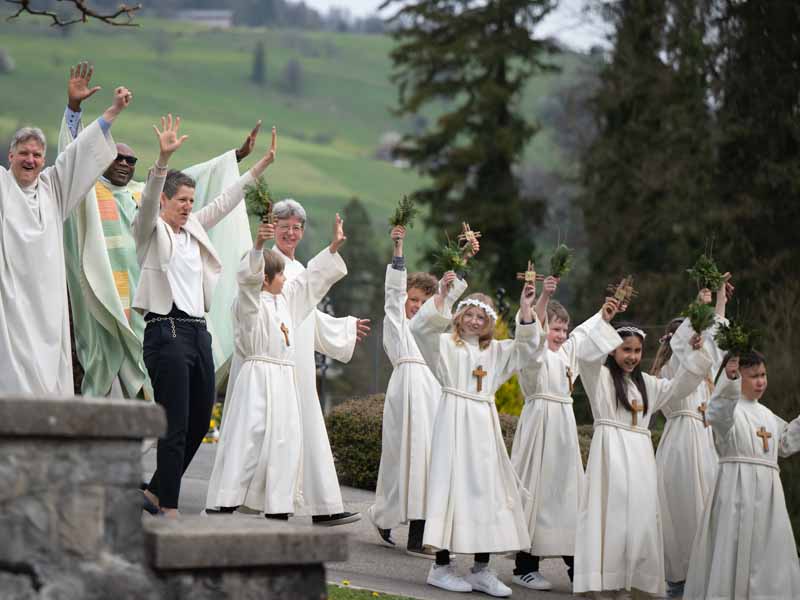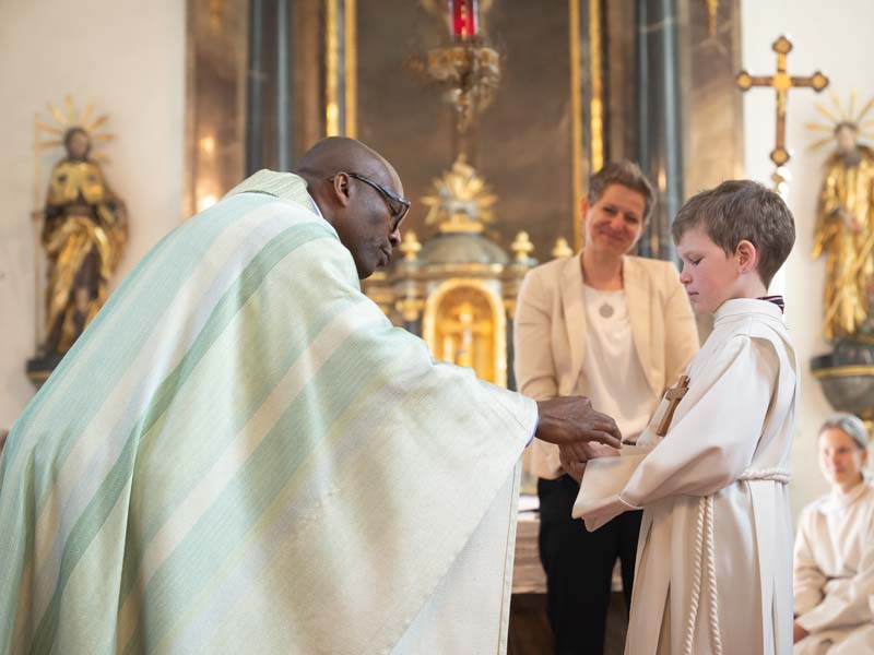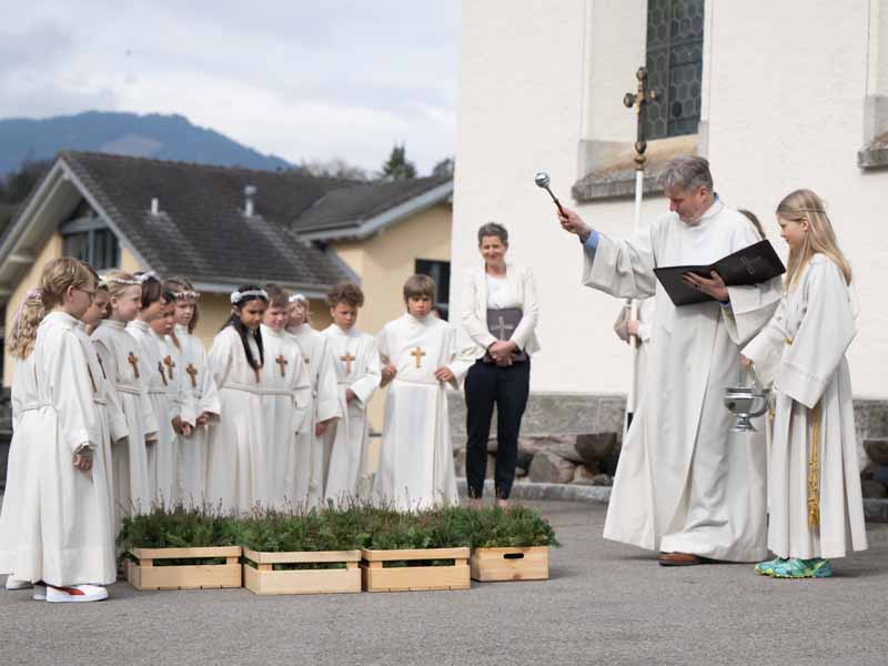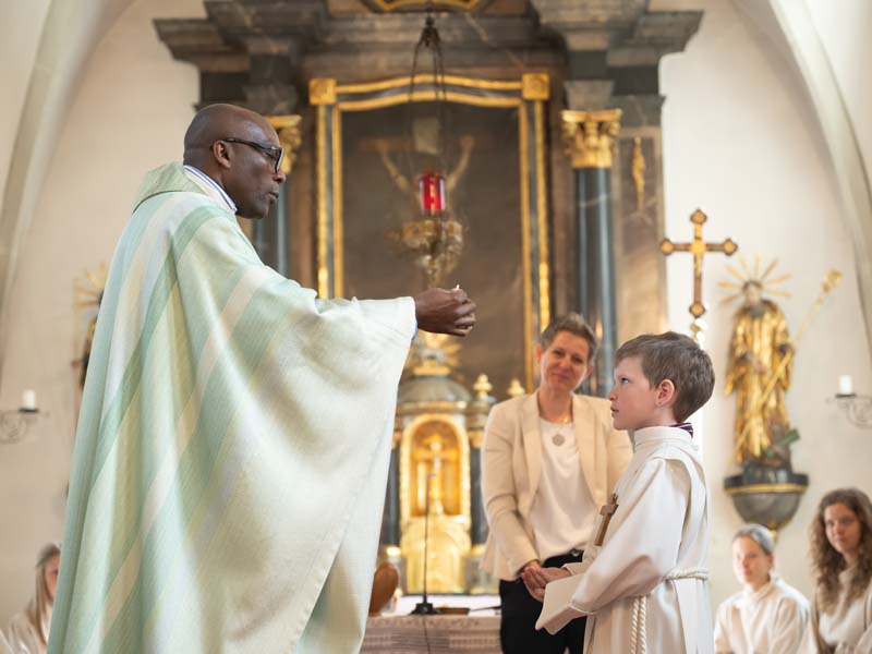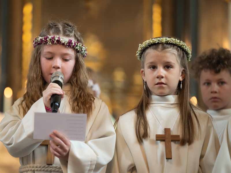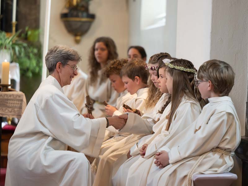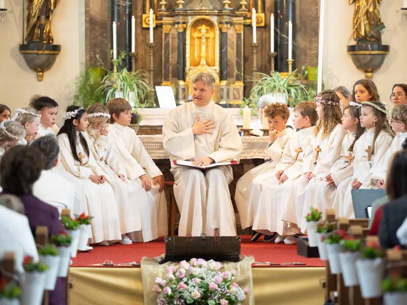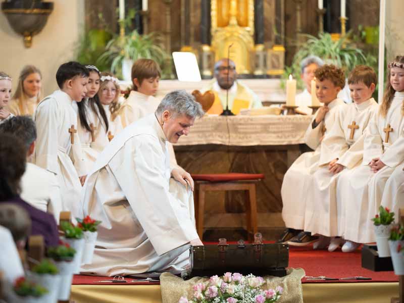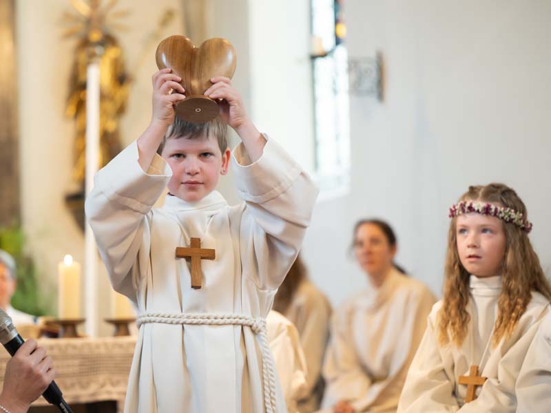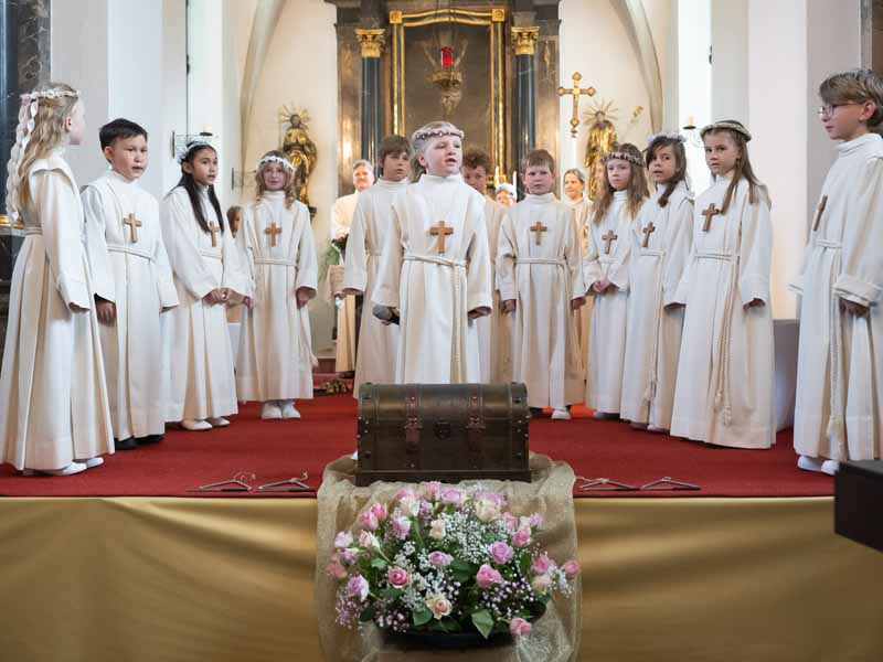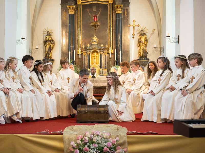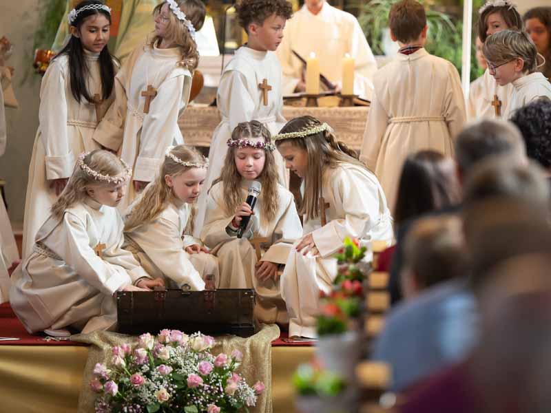 Die 12 Kinder feierten freudig ihr Fest und entdeckten einmal mehr viele Überraschungen in der geheimnisvollen Schatztruhe. Gut vorbereitet empfingen sie ihre erste heilige Kommunion.