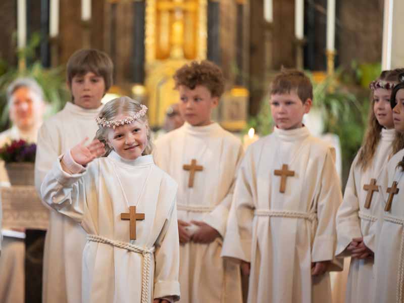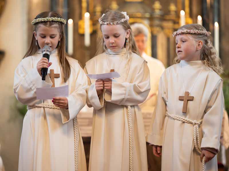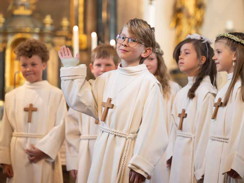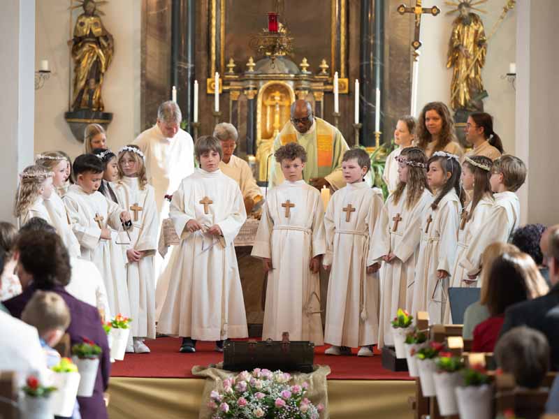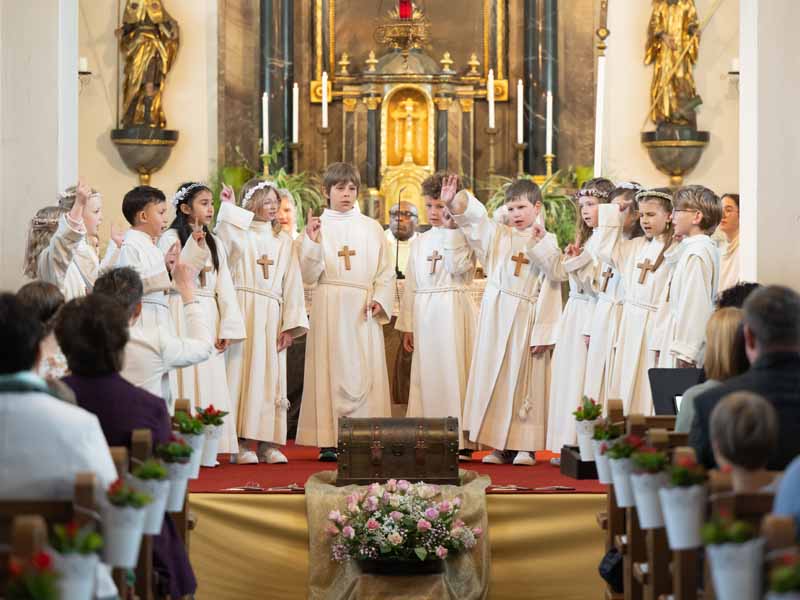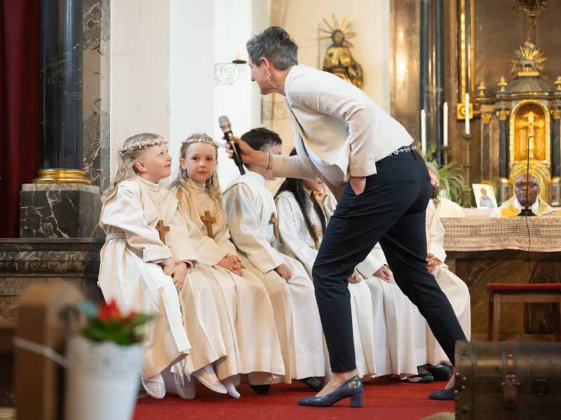 Mit fröhlichem Eifer waren alle dabei und freuten sich über besondere das Erstkommunion-Andenken.Hören Sie »hier nochmals die Lieder und die Geschichte