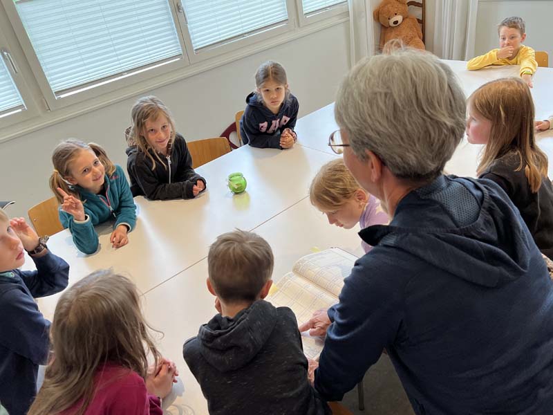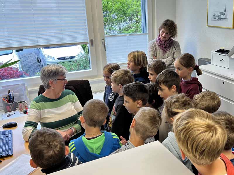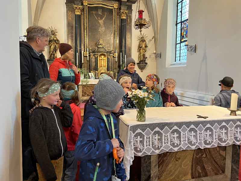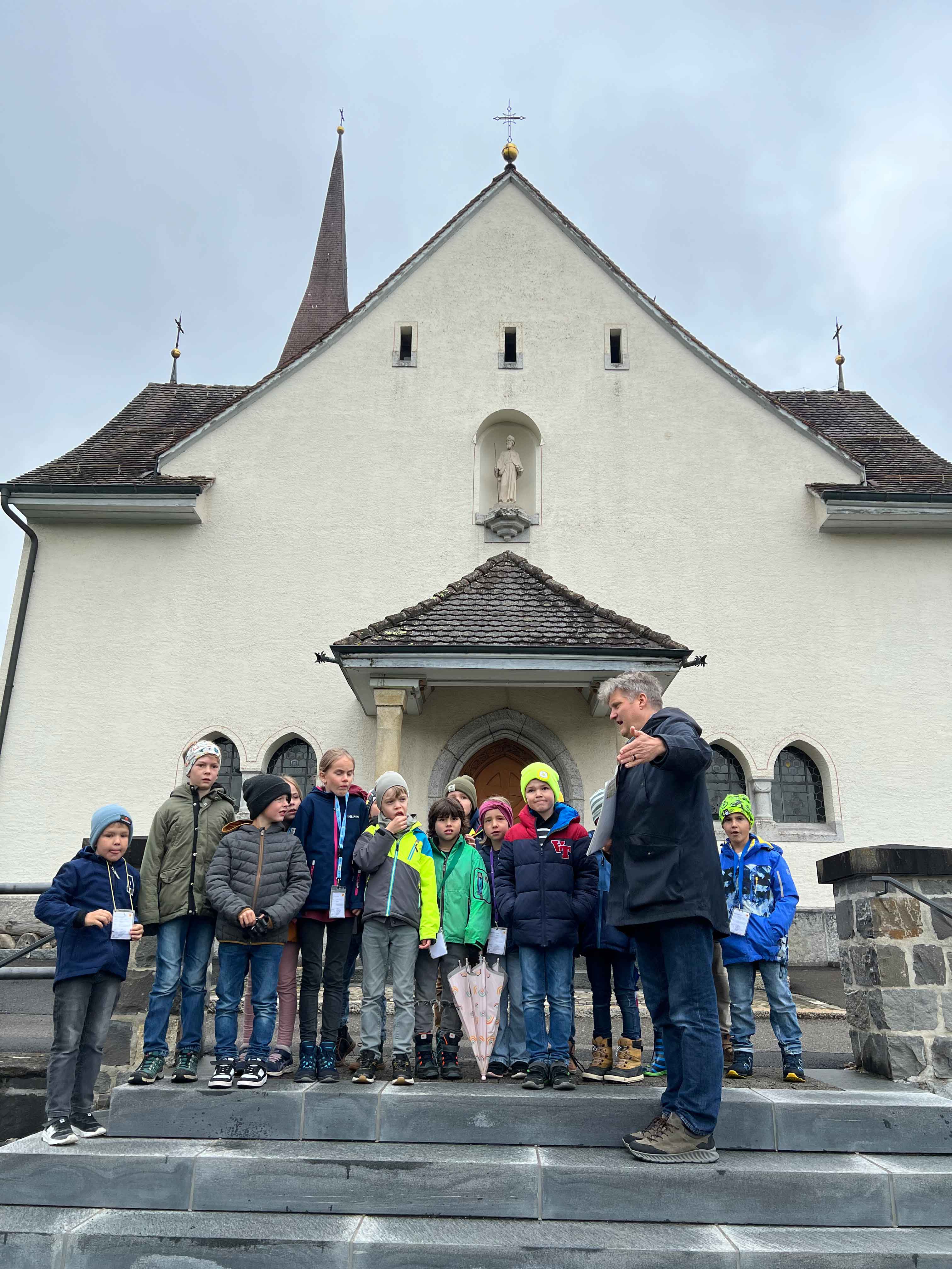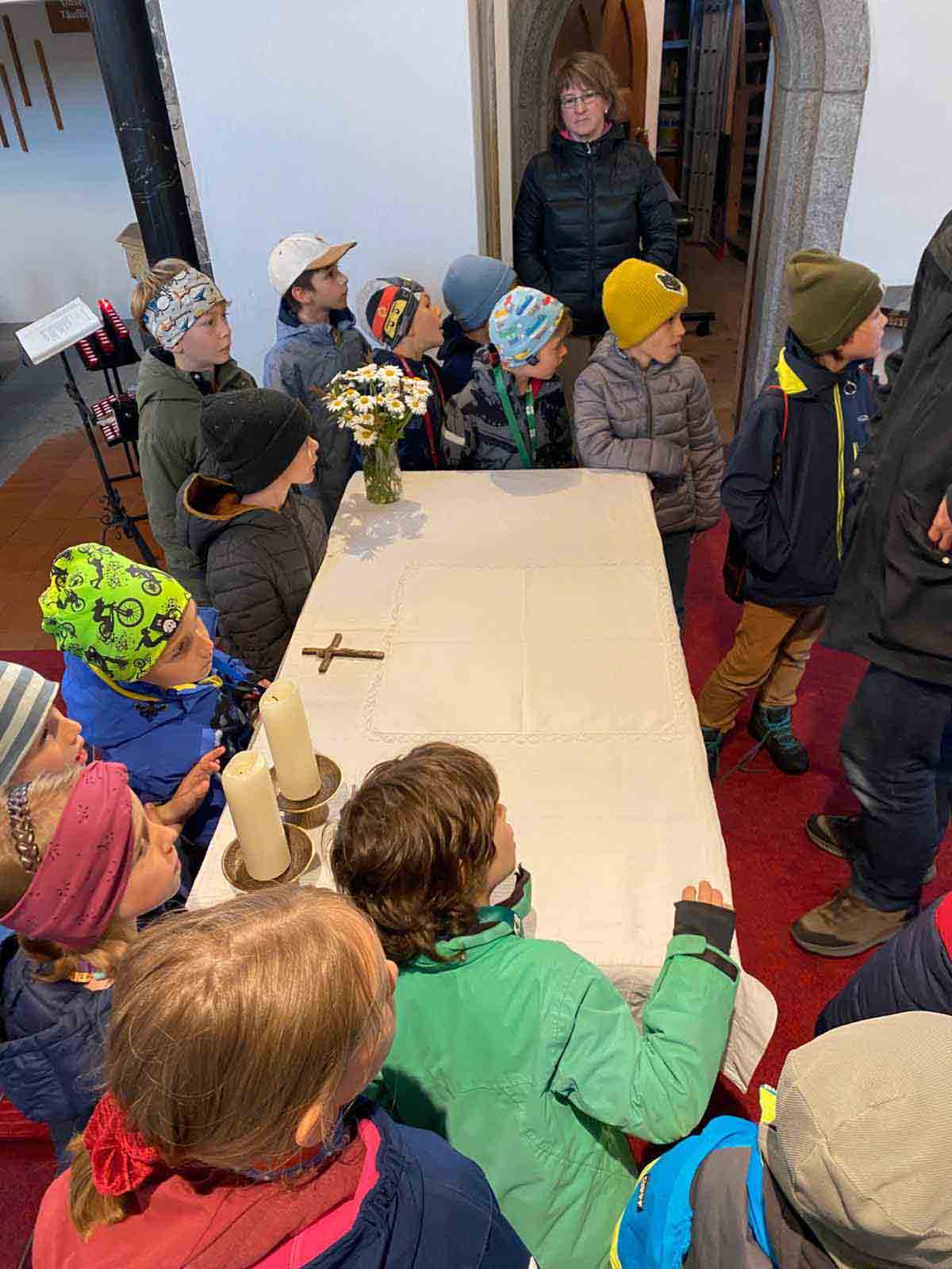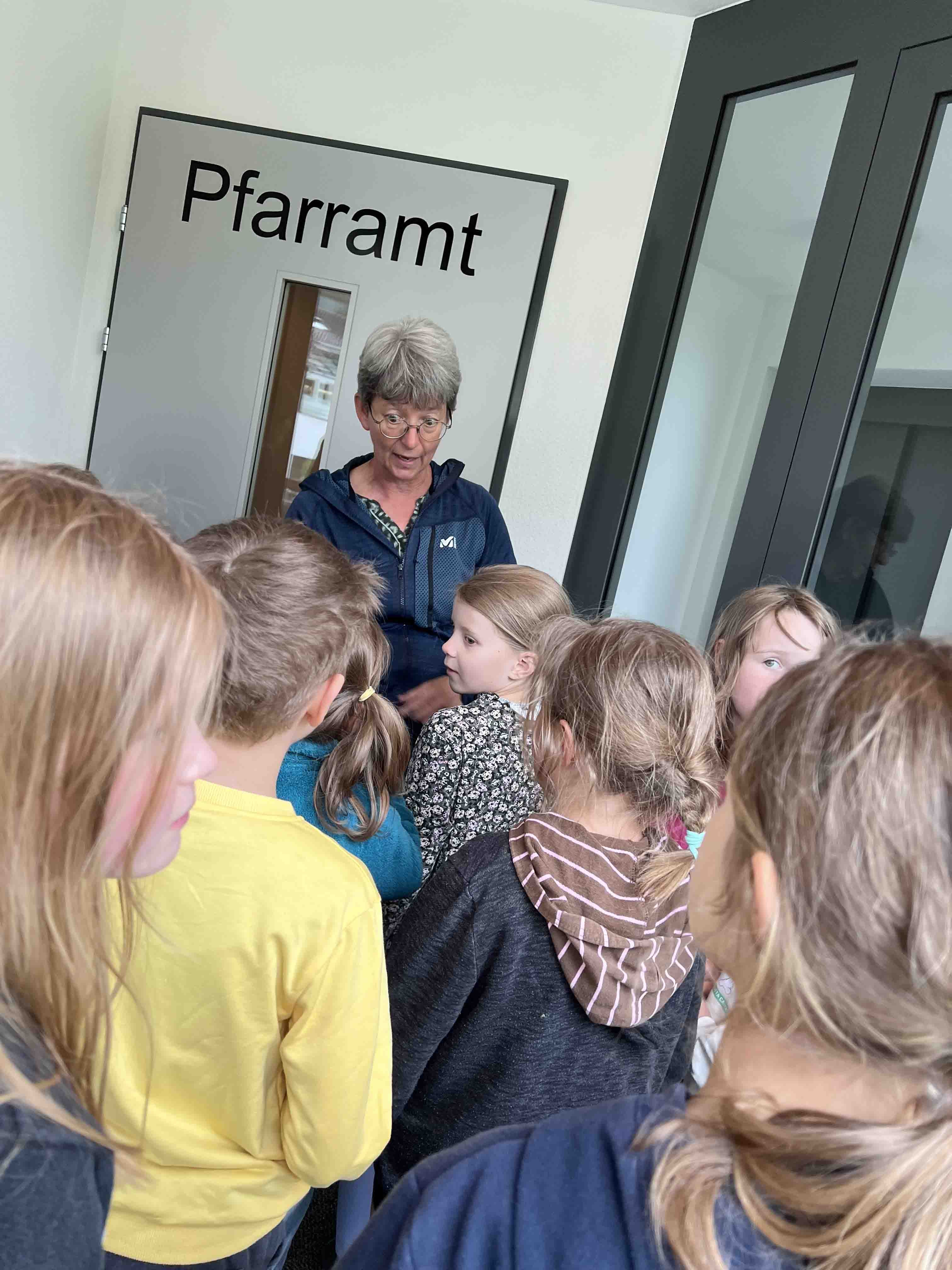 Was bedeutet der Taufstein in der Kirche? Wo kommt das Glockengeläut her? Was geschieht in den Büros im Pfarramt? Die Kinder liessen sich neugierig auf die Besichtigung und die anschaulichen Erklärungen ein.
