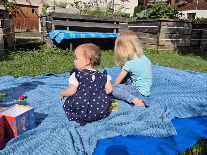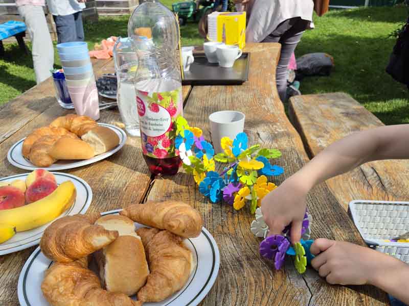 Gross und Klein kamen zum Chinderkafi im GEMEINSCHAFTSgarten, wo auch die Frauen vom FiZ und von der Mütter-und Väterberatung vor Ort waren.