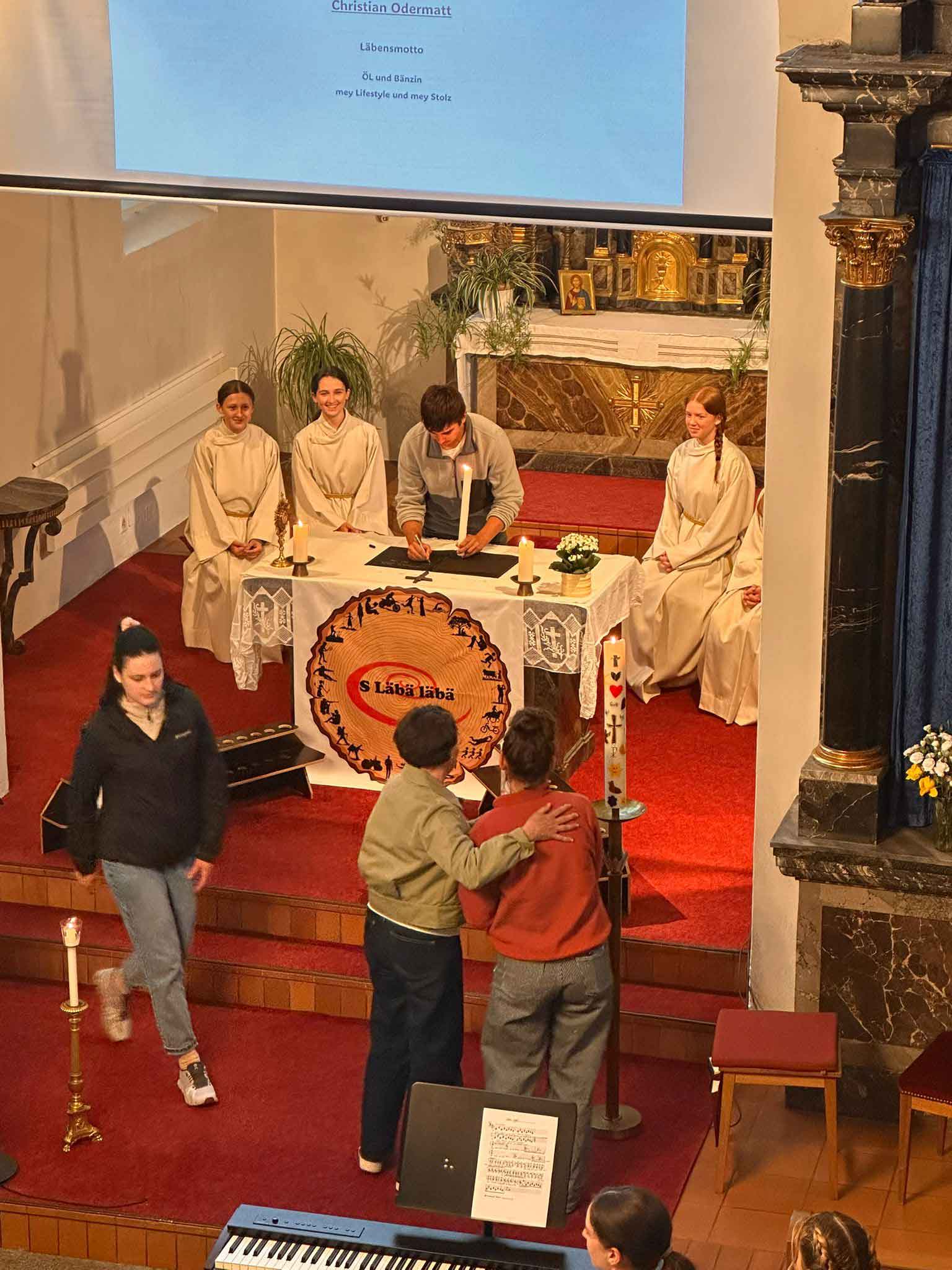 "S'Läbä läbä" - das Motto der 25 Firmlinge wurden im Einschreibegottesdienst hörbar in ihrer Musik, sichtbar bei der Übergabe der Taufkerze und spürbar in ihrer Lebensfreude und in den je eigenen Ideen, was im Leben wirklich zählt.