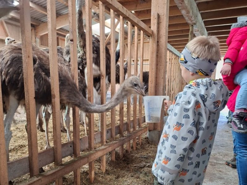 Die Besucher durften die Strausse füttern und sogar auf ein Straussenei stehen.