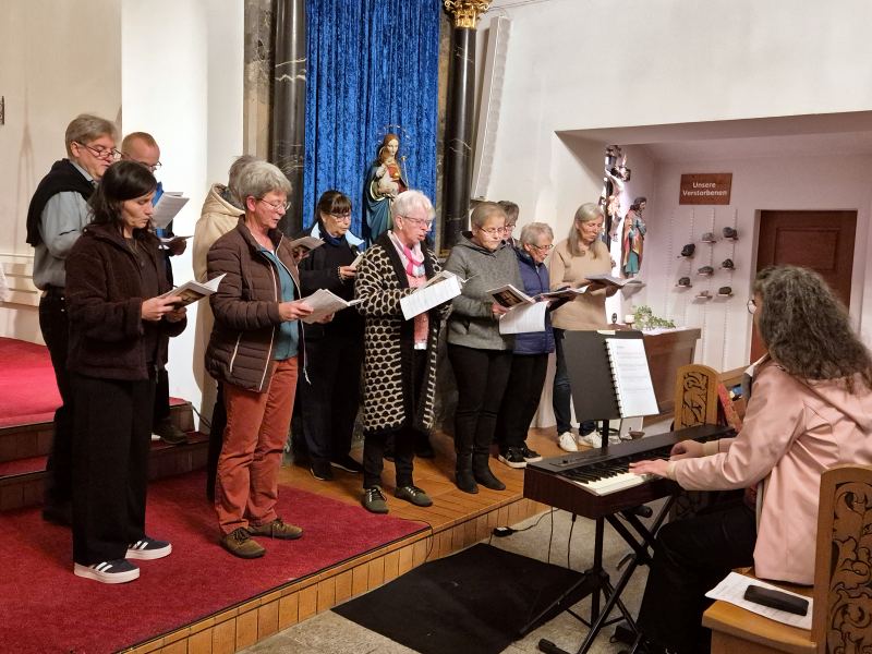 Der Spontanchor umrahmte mit den kurz vorher eingeübten Liedern den stimmigen Gottesdienst. Und beim anschliessenden Apéro bot sich die Gelegenheit persönlich mit den Engagierten anzustossen.