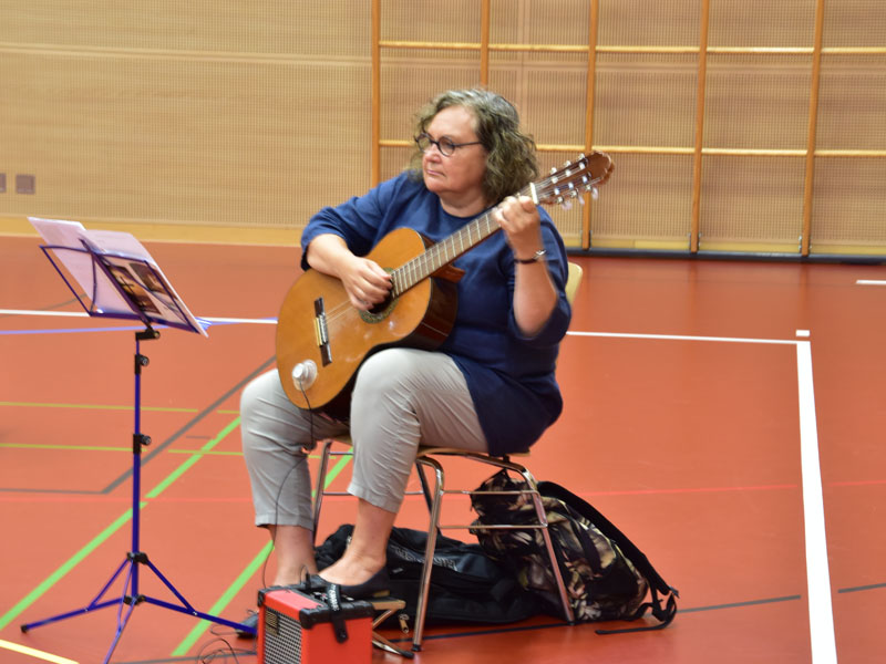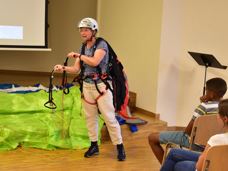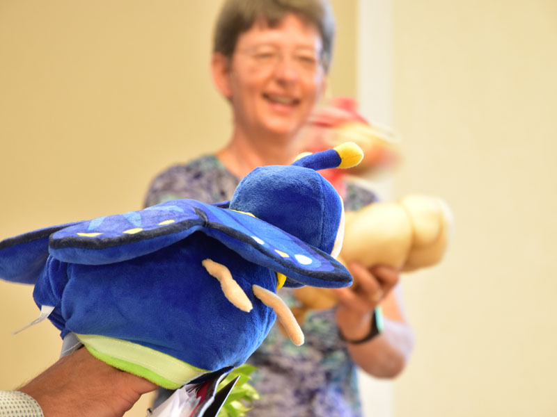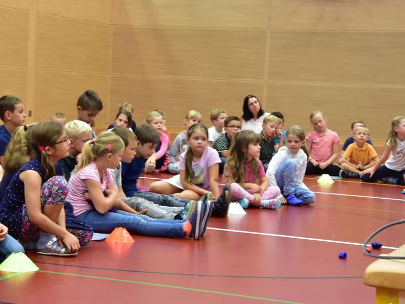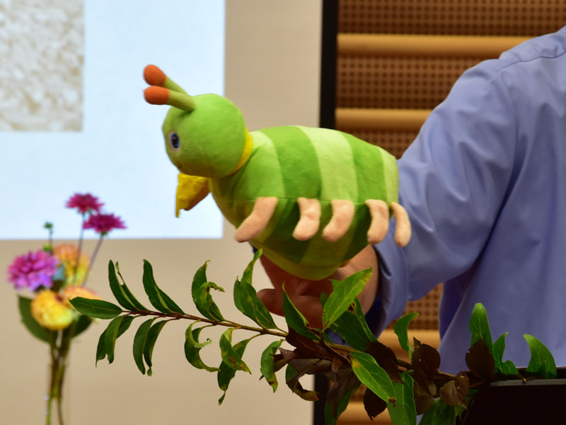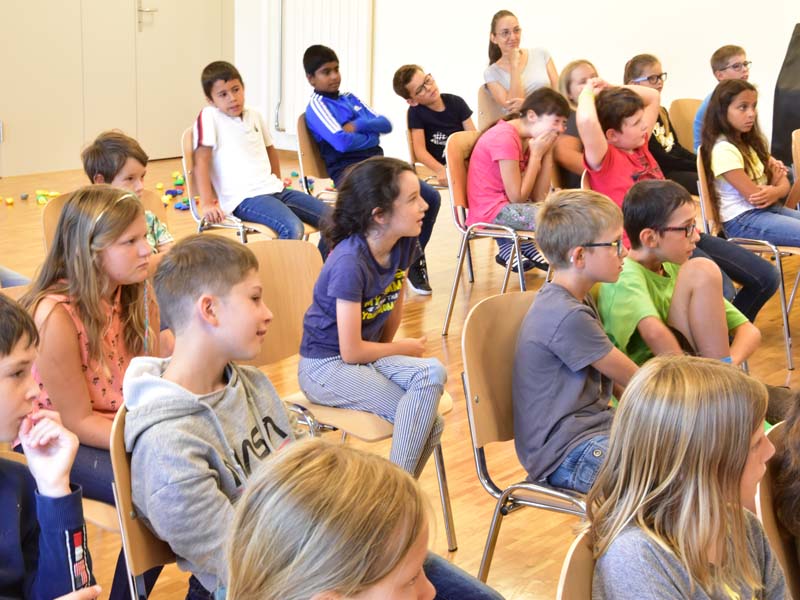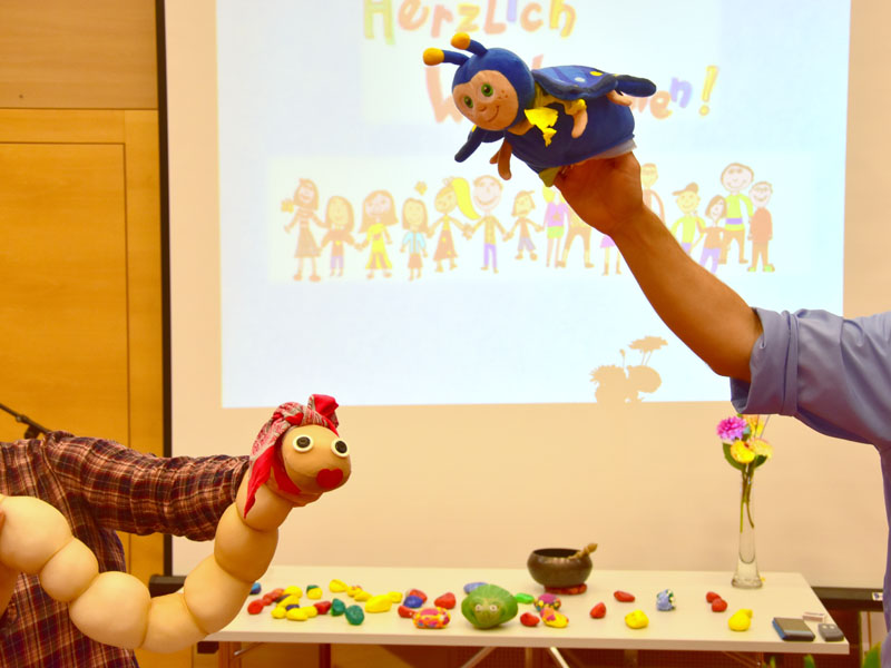 Die Raupe der Dankbarkeit, welche im Verlauf des Sommers aus bemalten Steinen entstand, wandelte sich an der Eröffnungsfeier zu einem bunten Schmetterling. Alle Beteiligten durften sich einen Dankbarkeits-Stein nehmen, der sie nun im neuen Schuljahr begleiten wird.