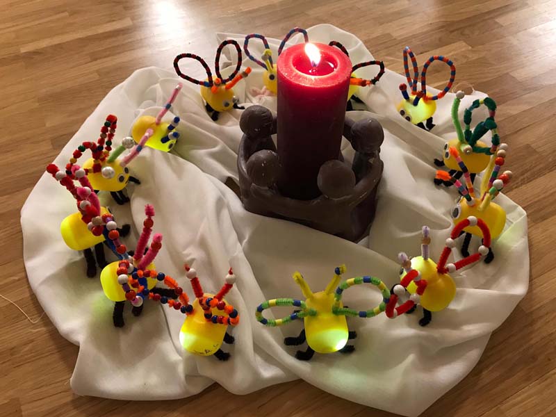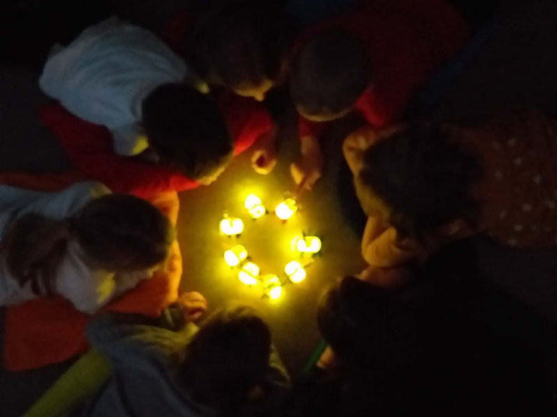 Aufgeregt und mit voller Vorfreude versammelten sich die Erstklasskinder am 24. November auf dem Pausenplatz Morgenstern sowie in St. Jakob zum ersten HGU-Nachmittag. Die Kinder und Leiterinnen lernten sich kennen, sie haben gemeinsam gesungen und eine märchenhafte Geschichte von Nino - das Glühwürmchen gehört. Im Anschluss durften alle Kinder selbst ein Glühwürmchen basteln, das sogar leuchtet.