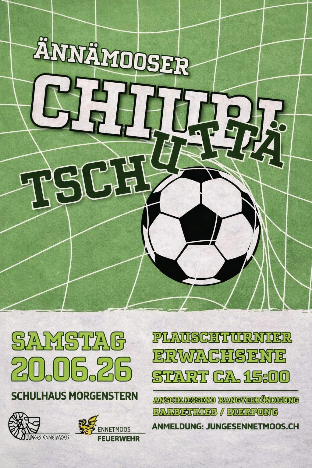 Das Chiubi-Tschuttä (Plauschturnier für Erwachsene) findet dieses Jahr beim Schulhaus Morgenstern statt.